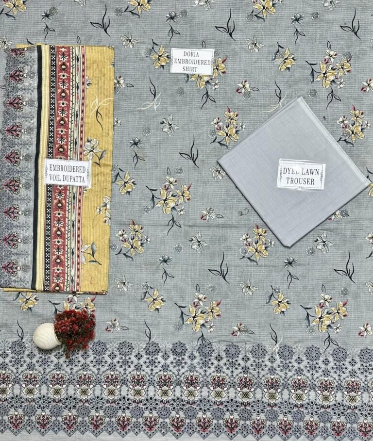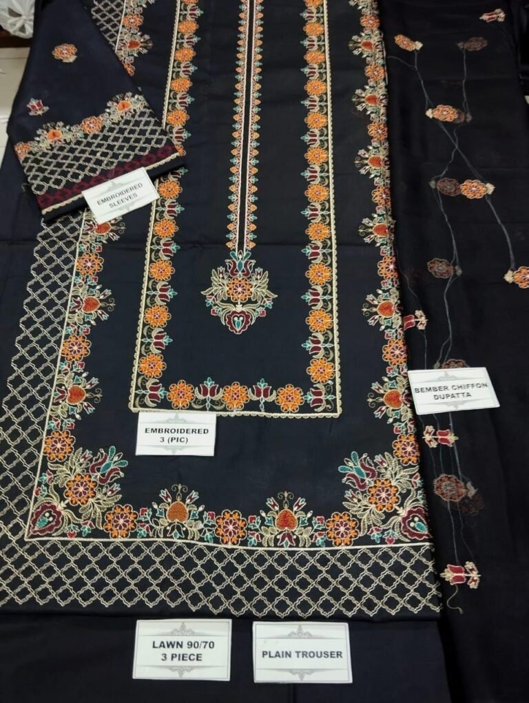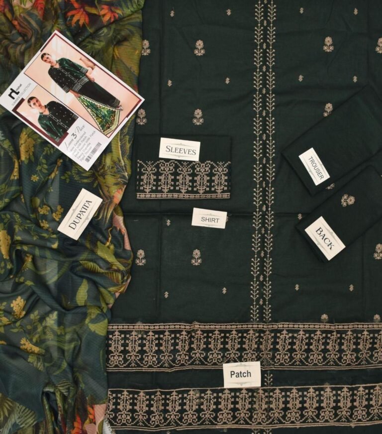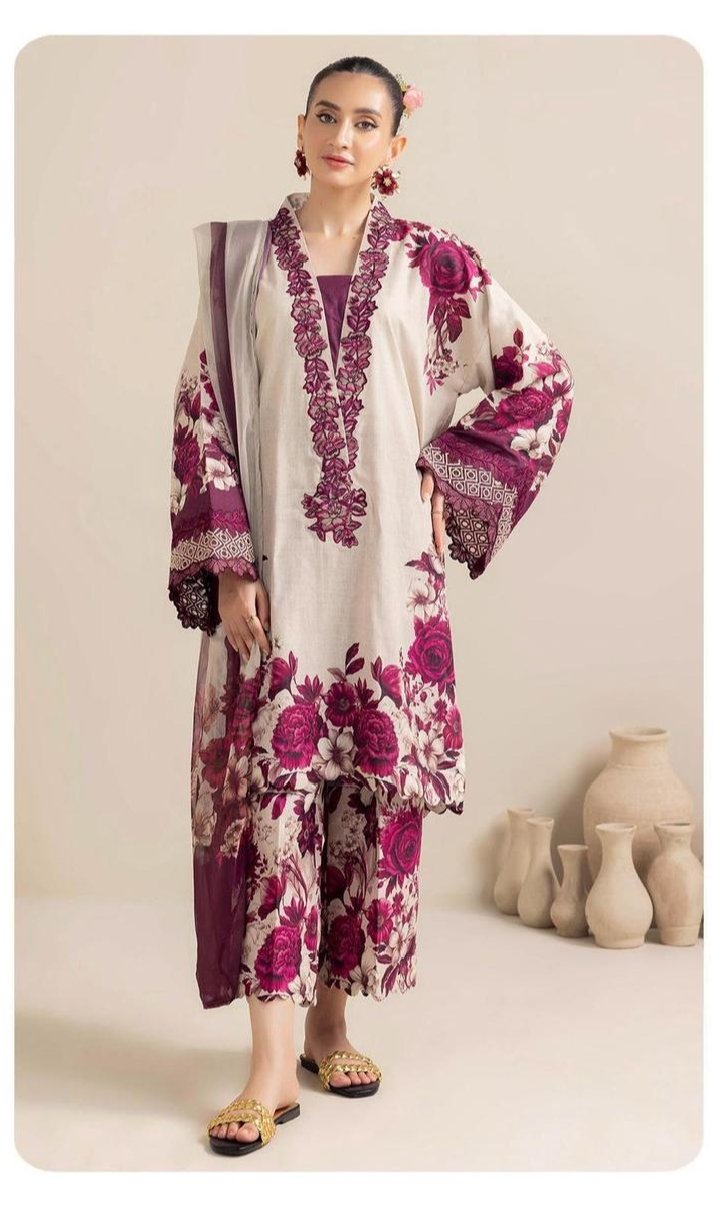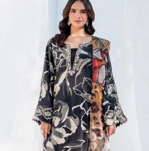 3 pcs unstiched lawn embroidered suit