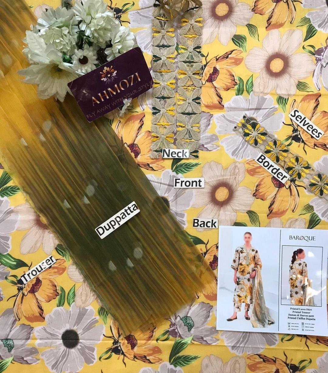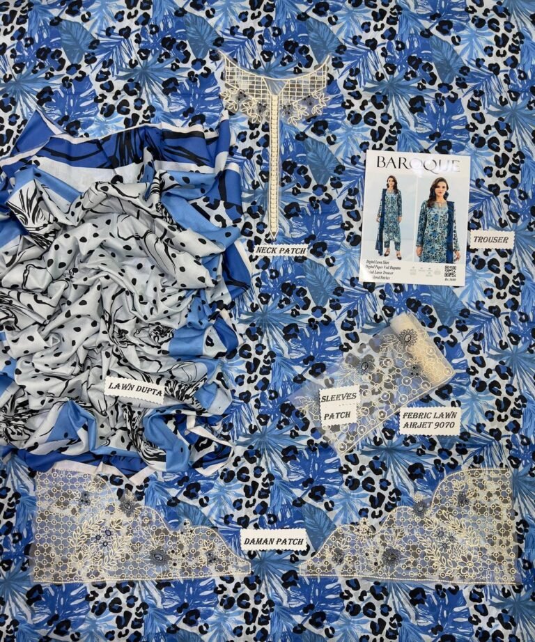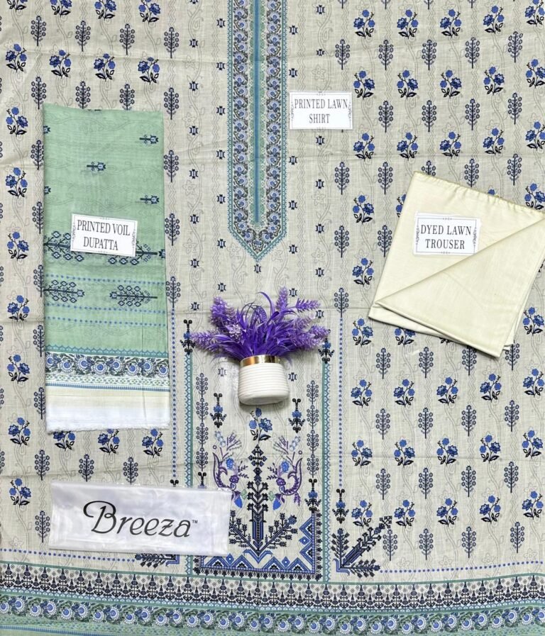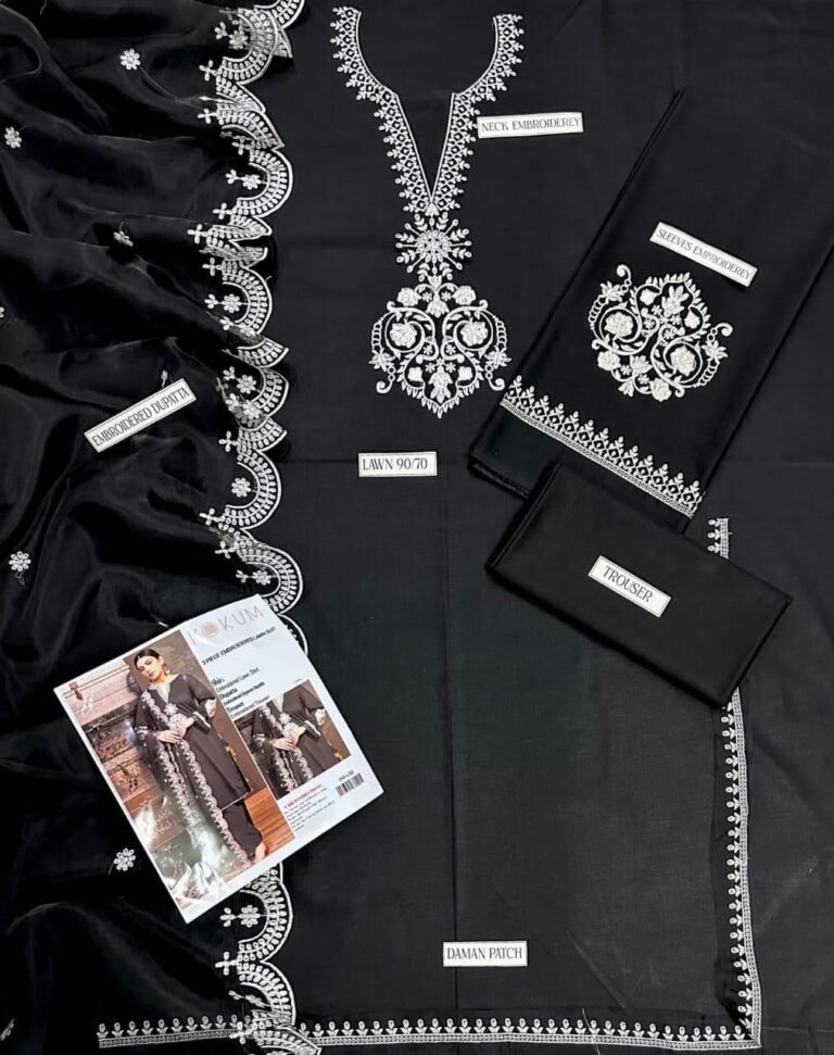 3 pcs unstiched lawn embroidered suit
