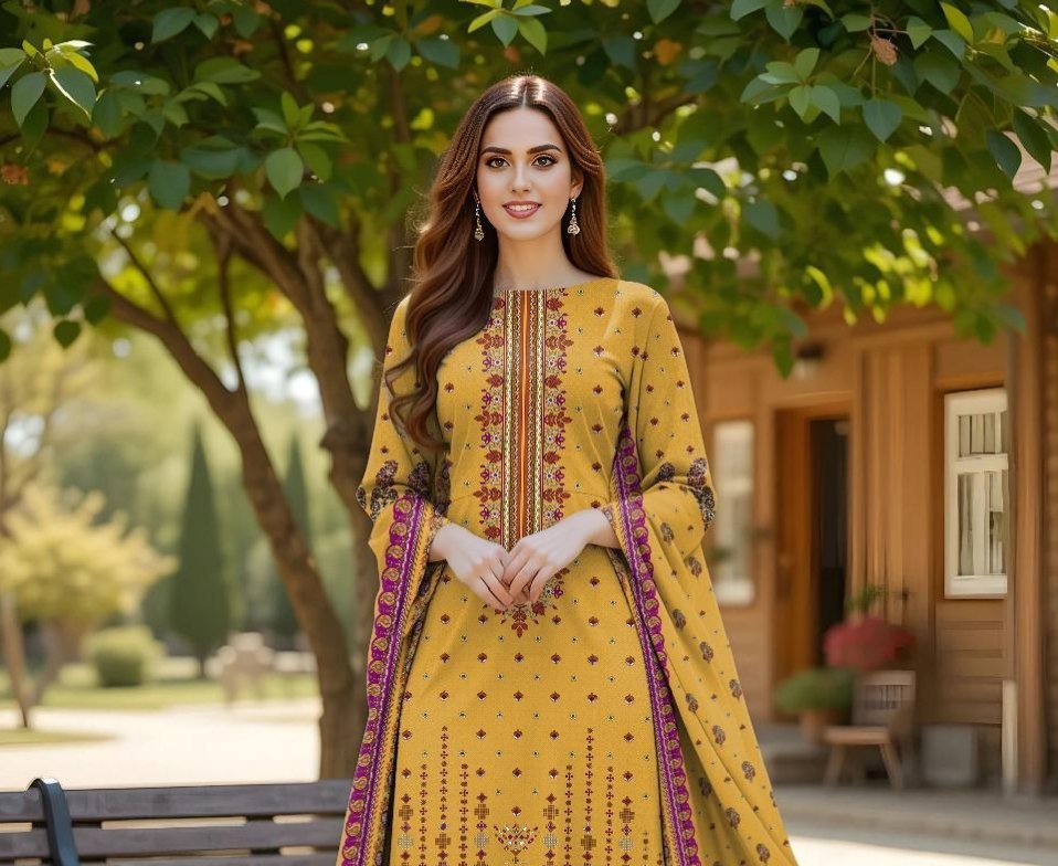 Stunning digital print unstiched suit