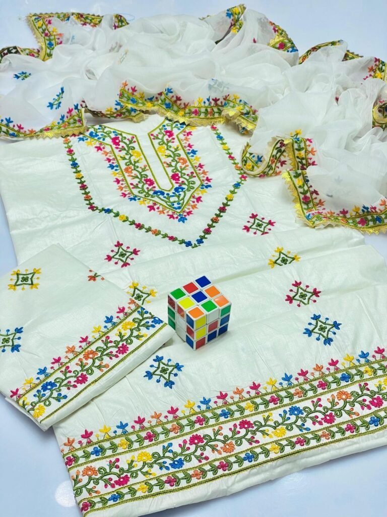 Rich look chikankri 3pcs unstiched embroidered suit