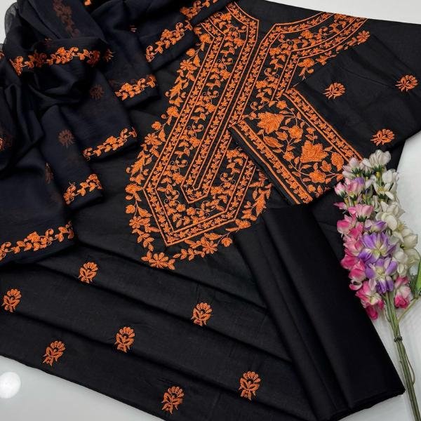 3pcs unstiched embroidered suit